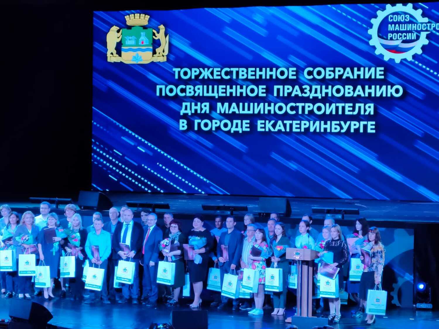 Лучшим представителям машиностроительных и оборонных предприятий Свердловской области вручили почетные грамоты и благодарственные письма. Награждение чередовалось с концертными номерами, подготовленными творческими коллективами города Екатеринбурга.