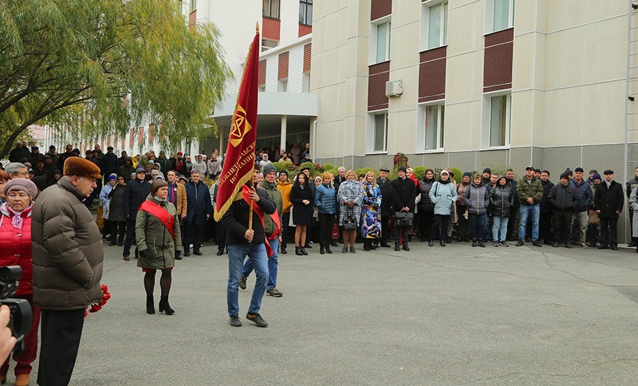 Вначале, к мемориалу торжественно вынесли почётное знамя предприятия.