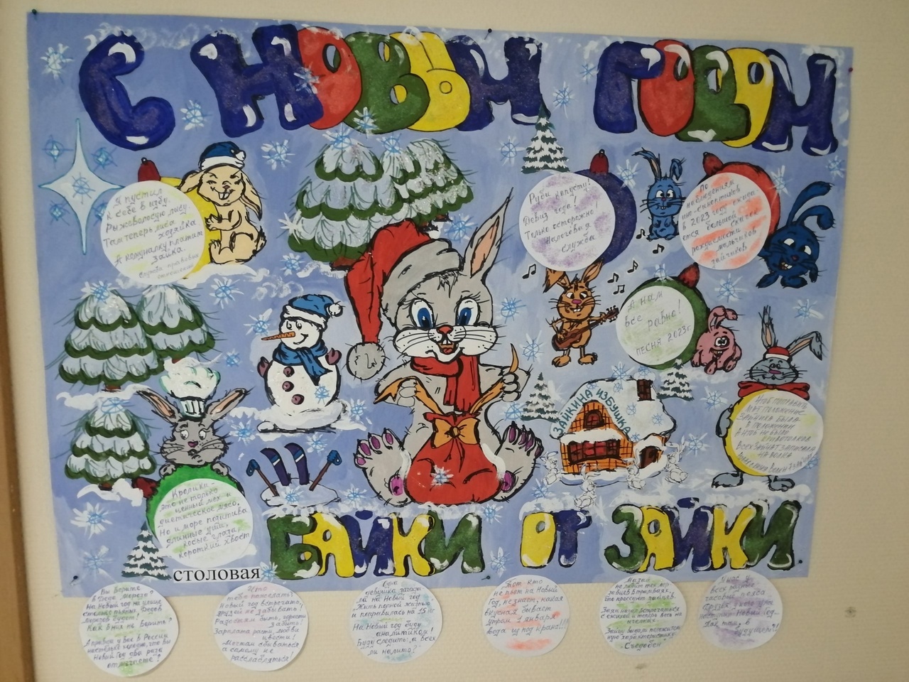 В этом году холл заводоуправления традиционно украсили стенгазеты и поделки, сделанные руками работников предприятия. Каких только поздравлений, напутствий, «Баек от заек», ушастых историй и гороскопов тут не прочитаешь! А поделки по истине получились чудесными, ушастыми, смешными, креативными –один только чемодан из СССР чего стоит! А концерт снеговика, для заек –это вообще произведение искусства! У нас есть зайцы вязанные, сшитые, сплетенные и даже деревянные! Выставка получилась по истине праздничная и новогодняя!