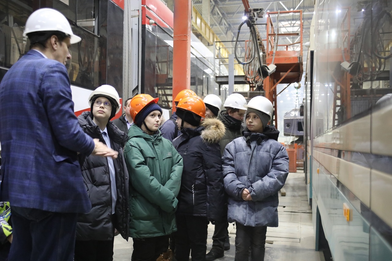 На экскурсии ребята познакомились с историей создания вагонов и посетили цех, где увидели как рождается современный транспорт.