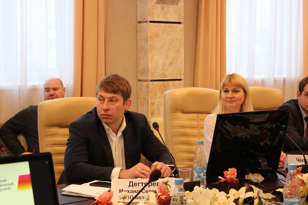 Союз машиностроителей России при обсуждении актуальных проблем качества подготовки специалистов представляли: Председатель Комиссии по молодежной политике Свердловского регионального отделения Общероссийской общественной организации "Союз машиностроителей России", главный специалист АО "НПО автоматики им. академика Н.А. Семихатова" Михаил Дегтярев; Начальник отдела по работе с персоналом ПАО «Машиностроительный завод имени М. И. Калинина» Константин Осинцев; Главный специалист департамента организационного развития АО «ПО «УОМЗ» имени Э.С. Яламова» Ирина Самосонова, а также Начальник бюро комплектования персоналом АО «Уралтрансмаш» Александр Паламарчук.
