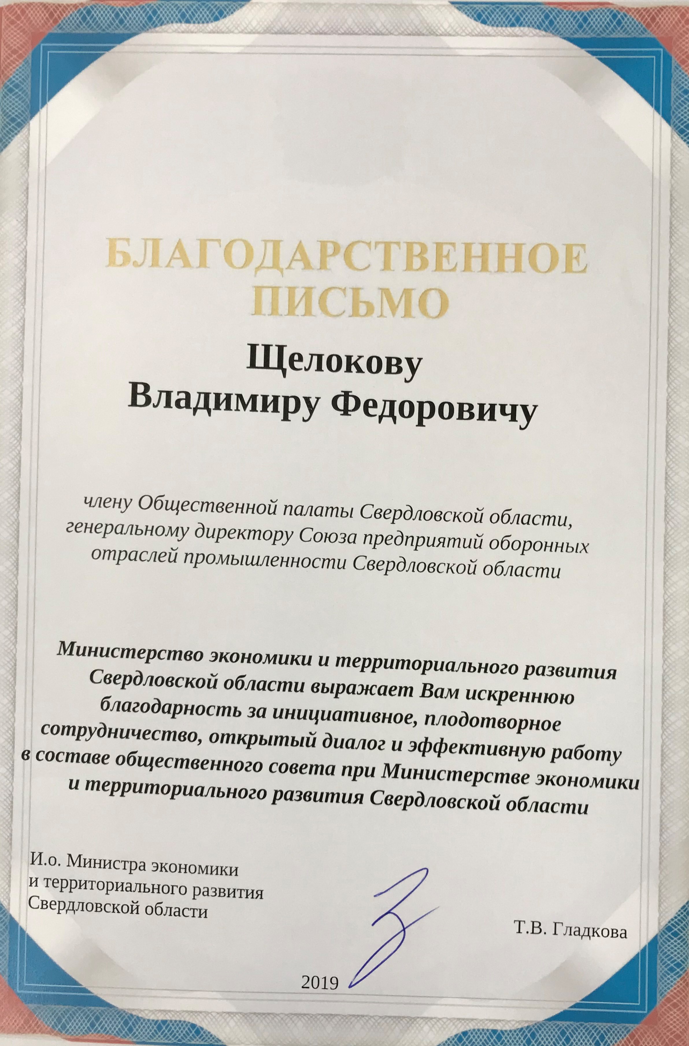 Исполняющий обязанности Министра экономики и территориального развития Свердловской области Т.В. Гладкова по итогам трехлетней деятельности общественного совета поблагодарила членов Совета за инициативное, плодотворное сотрудничество, открытый диалог и эффективную работу в составе Совета и вручила им благодарственные письма.
