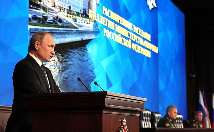 Заседание коллегии Министерства обороныВладимир Путин выступил на заседании коллегии Министерства обороны, состоявшемся в Национальном центре управления обороной.