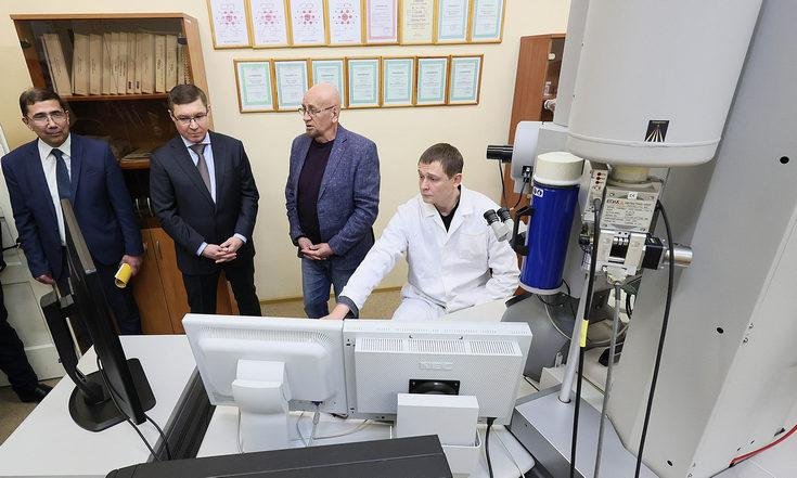 Во время посещения Института физики металлов полпред познакомился с наработками уральских учёных. Так в отделе электронной микроскопии в молодёжной лаборатории аддитивных технологий исследуют состав, структуру и свойства материалов методами электронной микроскопии. Оборудование позволяет выполнять работы с различными увеличениями вплоть до визуализации отдельных атомных слоев. Учёные активно сотрудничают с промышленными предприятиями и различными организациями: анализируют образцы и дают рекомендации по корректировке и улучшению технологий производства.
