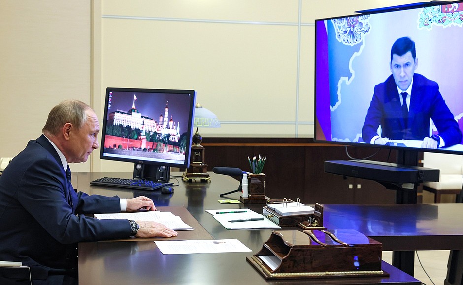 В режиме видеоконференции состоялась рабочая встреча Владимира Путина с губернатором Свердловской области Евгением Куйвашевым