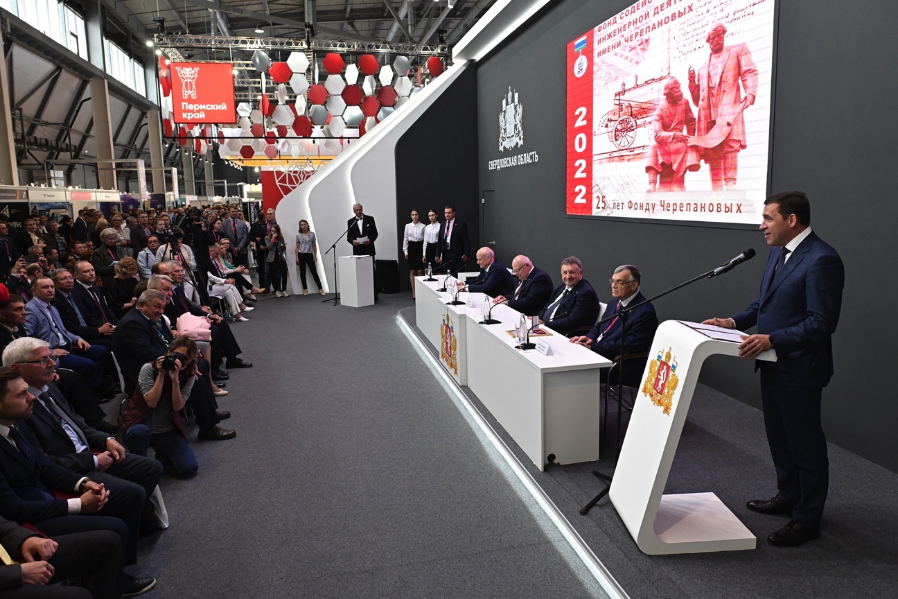 Губернатор Свердловской области Евгений Куйвашев отметил лауреатов юбилейной премии имени Черепановых. Чествование талантливых инженеров за вклад в развитие научно-технического прогресса региона состоялось в 25-й раз на полях Международной выставки ИННОПРОМ-2022.