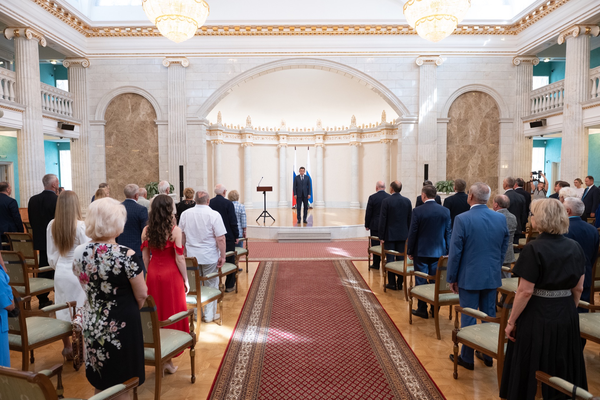 «Ежегодно сотни наших земляков, представляющих самые разные профессии, удостаиваются высокой оценки на федеральном и региональном уровне. Это признание ваших заслуг перед обществом, перед всей страной. Это достойная оценка вашего многолетнего труда, таланта, ответственного отношения к делу, неравнодушия к людям и к судьбе Родины», — сказал Евгений Куйвашев.