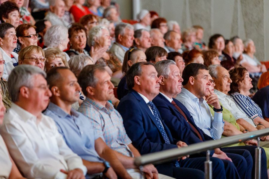 Евгений Куйвашев отметил: в основе достижений — многолетний добросовестный труд сегодняшних ветеранов, именно они помогли Свердловской области добиться выдающихся успехов как в промышленности и укреплении оборонного комплекса, так и в науке, образовании, сельском хозяйстве, медицине, культуре, спорте.