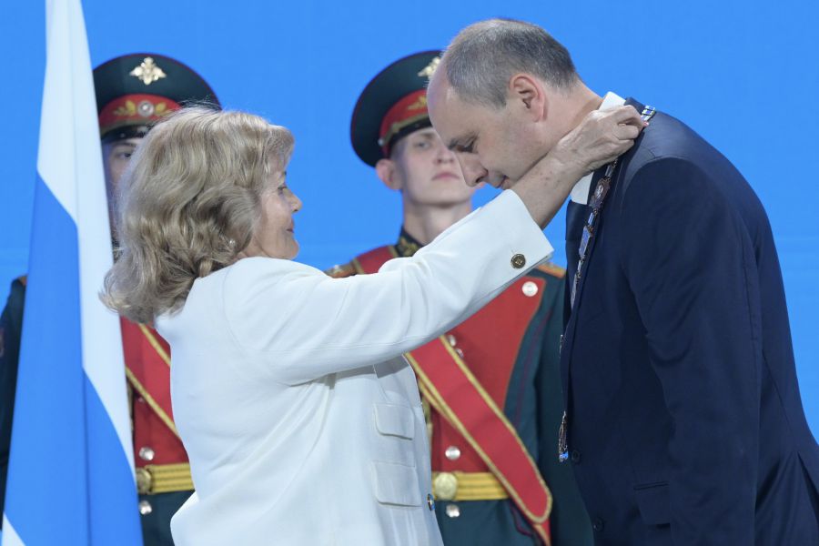 Председатель Законодательного Собрания Людмила Бабушкина передала Денису Паслеру знак губернатора Свердловской области.