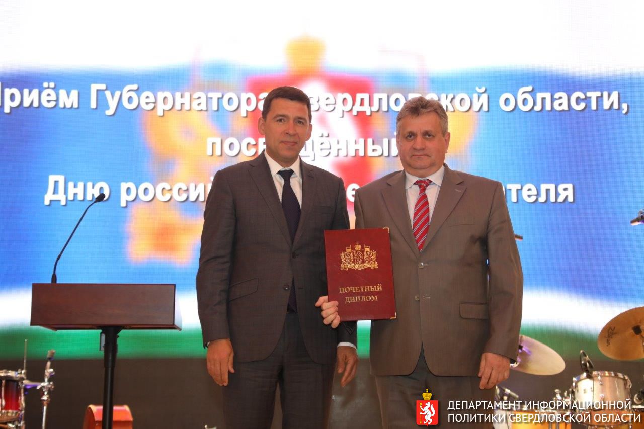 Почетными дипломами имени Анатолия Мехренцева сегодня были отмечены лучшие представители директорского корпуса Свердловской области - за эффективное руководство, инновационное и технологическое развитие предприятий, высокую социальную ответственность. Так, награду из рук губернатора Евгения Куйвашева получили генеральный директор Уральского электрохимического комбината Александр Белоусов, директор Института реакторных материалов Дмитрий Марков, директор агропредприятия «Тепличное» Роман Тягунов и директор компании «Лестех» Александр Шестаков.